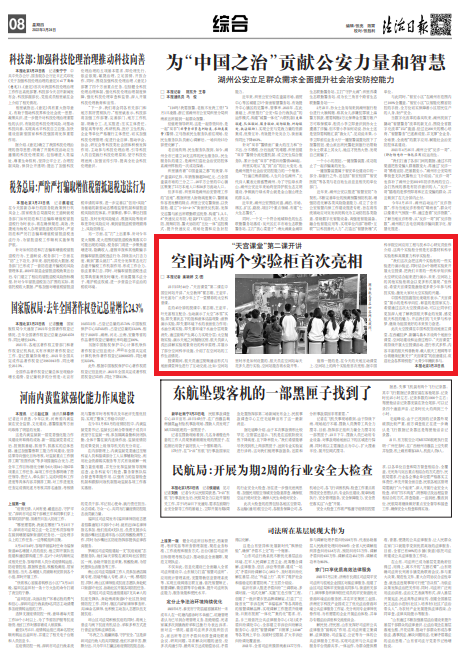 “我们这次会把这两个实验柜的一些实验进行演示验证,同时结合4个物理实验来开展太空授课,把我们日常的一些科学知识和太空研究结合起来进行演示。未来,空间站上的其他实验柜将会以更多形式展现。”张伟说,希望天宫课堂能激励更多青少年参与科技实验,激发大家对太空实验的兴趣。