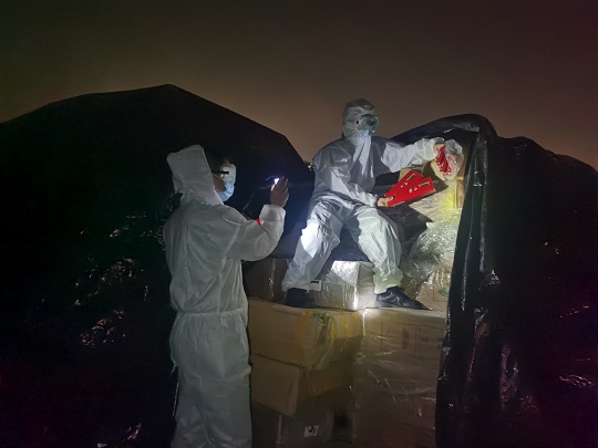 3月14日清晨6时许,该局铁山港工作站接群众报警称,在北海市铁山港区兴港镇附近海域有1艘搁浅木质船舶,其上有大量货物且被篷布遮盖,疑为走私船舶。接警后,该站迅速调派两队执法员对相关海域进行海陆联合搜查。上午9时许,海警执法员在兴港镇淡水口村附近海域发现该艘搁浅木船,随即对现场进行封控,并通知防疫部门进行防疫消杀。当日晚8时许,经防疫消杀后现场检查,木船上装载有“中华”“荷花”“芙蓉王”等品牌香烟一批,现场未发现该木船及所装载香烟的任何相关合法手续,亦无人对木船及香烟主张权利。因涉嫌走私,海警执法员依法现场查扣涉案木船1艘,查获涉嫌走私香烟12576条。