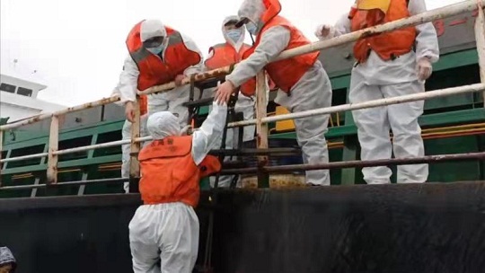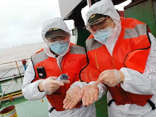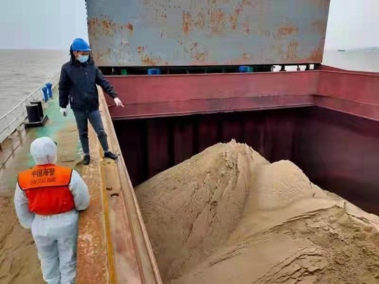 3月21日凌晨,该局巡逻艇在宝山附近海域巡逻时发现1艘船舶形迹可疑,该局执法人员严格按照当前疫情防控要求,穿戴好防疫装备,携带消毒设备前往该嫌疑船舶进行登临检查。经査,该船舶货舱内满载疑似海砂类砂石,砂石里混杂大量碎贝壳,随后执法人员在所有船舱依次提取样品,均发现船舶所载货物与货运清单明显不符,且相关人员无法提供合法齐全手续。目前,案件正在进一步侦办中。