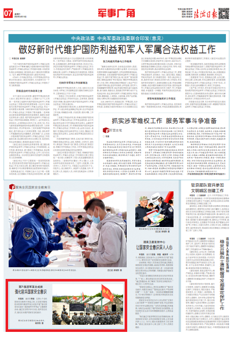 本报讯 通讯员李政 在第七个全民国家安全教育日来临之际,正在皖东腹地驻训的第71集团军某合成旅开展“强化国家安全意识 推进强军兴军伟业”主题教育活动,通过安全常识学习讨论、组织签名仪式,强化官兵维护国家安全的意识。