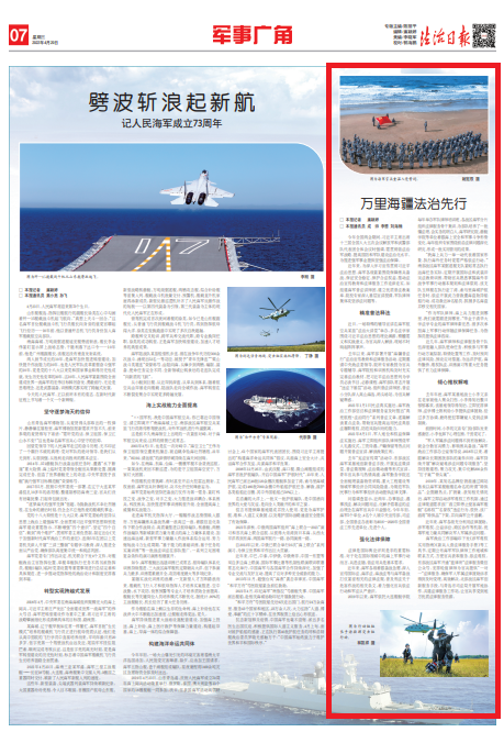 去年以来,海军部署开展“海疆普法行”法治宣传教育和法律服务活动,定期邀请中央政法委领导、院所专家教授为官兵专题辅导。海军院校和训练机构及时充实完善法治教材,把习近平法治思想列为学员必读书目、必修课程。海军部队常态开展“送法下基层”活动,组织普法讲师团、普法小分队深入高山海岛、码头场站,为官兵解疑释惑。