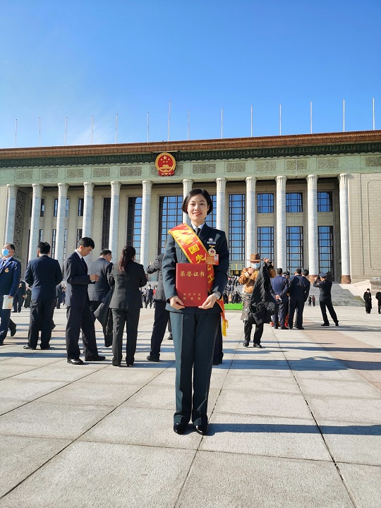 图为被授予“全国先进工作者”称号后,高锐在人民大会堂前留影。(本人提供)
