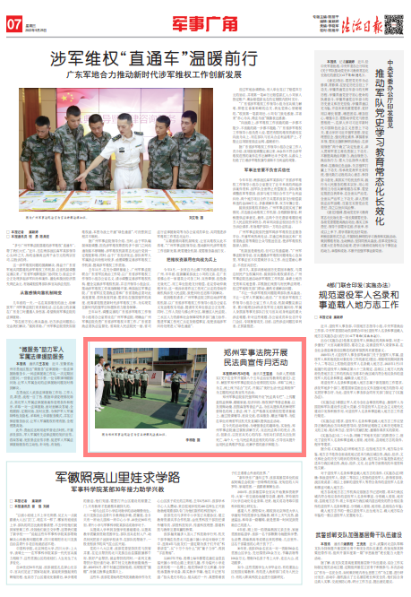 郑州军事法院依托强军网开设“民法典专栏”,上传覆盖权益保障、婚姻家庭、经济纠纷、物权保护等普法教案,以及视频动漫、挂图海报等普法产品,为官兵提供具有鲜明军营特色的线上普法;线下,在严格落实疫情防控要求基础上,通过授课辅导、座谈交流、咨询服务、赠送书籍等,为驻在单位河南省军区机关及直属队提供送法活动。