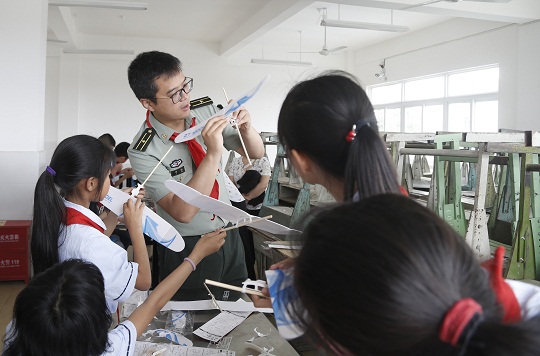 图为2018年某部官兵深入结对学校为孩子们讲授航模知识。张俊睿 摄