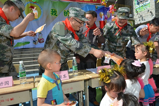 图为2014年某部官兵前往结对小学与孩子们共度六一,给孩子们颁发奖状,见证他们的成长与喜悦。张鹏程 摄