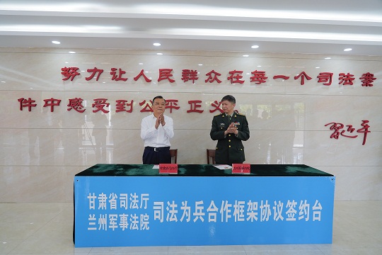 图为甘肃省司法厅与兰州军事法院签约现场。