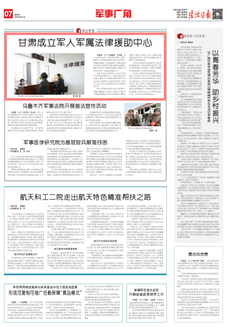 本报讯 通讯员李鹏程 王丹妮 近日,甘肃省司法厅、甘肃省军区政治工作局、解放军兰州军事法院联合印发《甘肃省军人军属法律援助工作实施细则》,明确各级司法行政机关在驻军单位建立健全四级联动、覆盖全省的军人军属法律援助工作网络,成立甘肃省军人军属法律援助中心。