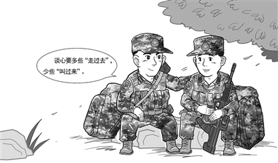 感人心者,莫先乎情。谈心应该多些“走过去”,少些“叫过来”。“走过去”,饱含关心关爱的温暖;“叫过来”,带着例行公事的冰冷。因此,带兵人要自觉放下架子,以朋友身份与战士相处,以兄长身份与战士交心,结合性格特点、家庭背景和思想波动等情况,紧扣问题症结开展谈心。要注意把握谈心时机和场合,多在茶余饭后说一说、工作间隙谈一谈、休闲娱乐聊一聊。只有这样才能让战士的个人情感得到彻底释放,越说越想说、越说越敢说,带兵人才能够真正摸准官兵思想底数,进而找到思想症结,解开思想疙瘩,让官兵情绪得到疏解,把问题隐患消灭在萌芽状态。
