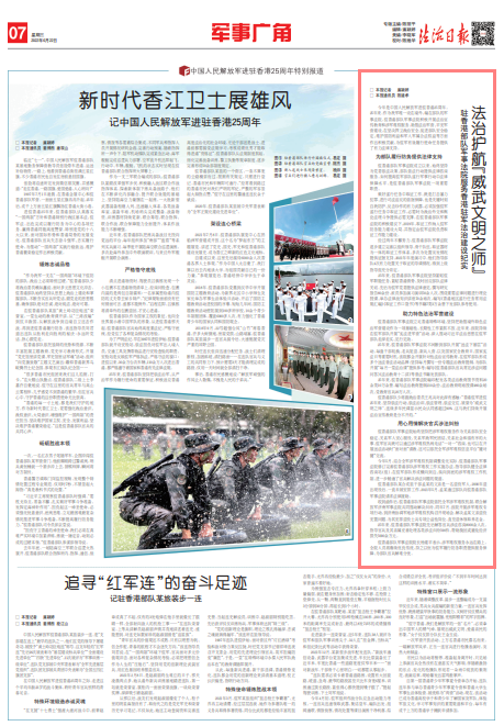 驻香港部队少将副政治委员王兆兵对此深有感触:“香港驻军进驻25年来,坚持依法行动、依法治训、依法管理、依法交往,被誉为‘威武文明之师’,连续多年民调显示民众认同感超过90%,这与我们持续开展法治宣传教育是分不开的。”