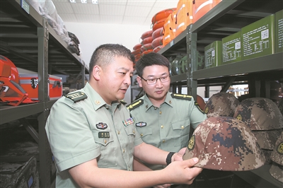 图为刘东升(左)在检查人武部战备物资器材。张荣法 摄