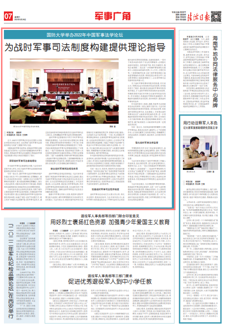 近日,2022年中国军事法学论坛在国防大学政治学院西安校区举办,论坛围绕“战时军事司法制度的理论与实践”主题展开研讨交流。