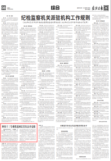 从2021年10月16日到2022年4月16日,在为期半年的神舟十三号载人飞行任务中,航天员翟志刚、王亚平、叶光富创造中国航天员连续在轨飞行时长新纪录,以“感觉良好”状态顺利完成一系列创新性、突破性科学试验和空间应用任务。