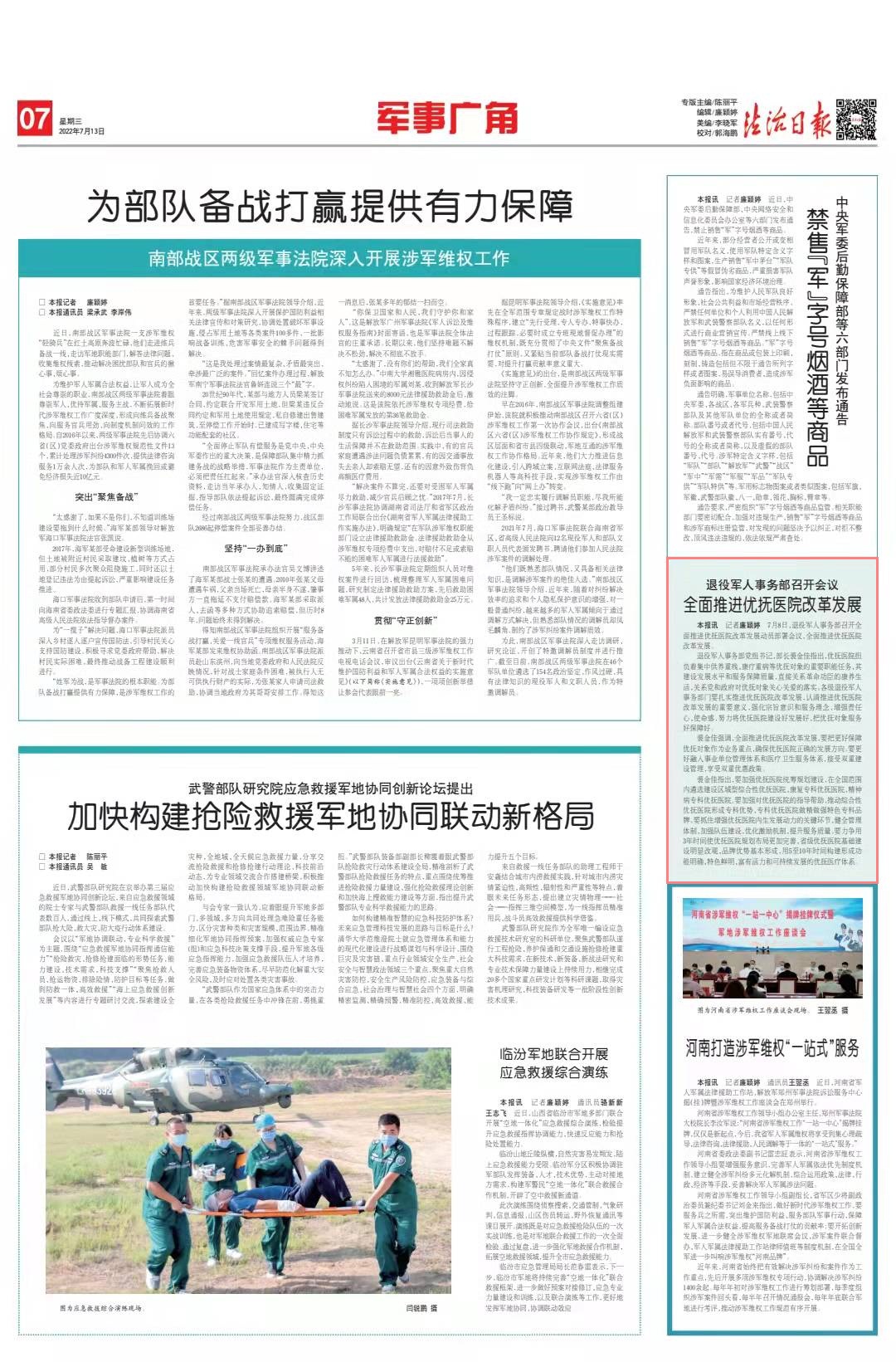 本报讯 记者廉颖婷 7月8日,退役军人事务部召开全面推进优抚医院改革发展动员部署会议,全面推进优抚医院改革发展。
