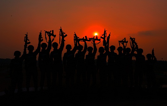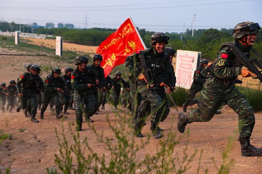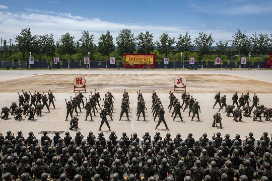 京郊,骄阳似火。“3名‘不法分子’向某高地逃窜,现命令你部迅速处置。”指挥员一声令下,无人机即刻升空,精准锁定目标,战斗小组交替掩护逼近。“突击!”随着一阵枪响,“不法分子”应声而倒。