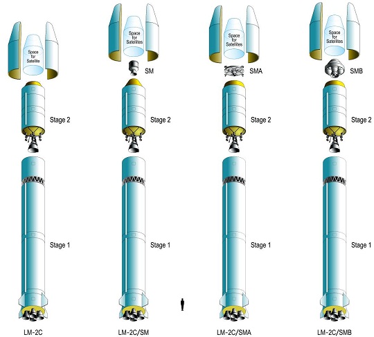 我国以长二丙火箭为基础,后又研制出了带固体上面级的长征二号丙/FP、长二丙/SM、长二丙/SMA和带液体上面级的长二丙/YZ-1S构型火箭。长二丙及其改进型火箭是长征系列运载火箭中唯一同时具备发射近地轨道(LEO)、太阳同步轨道(SSO)、地球同步转移轨道(GTO)及大椭圆轨道卫星能力的运载火箭,发射方式有单星发射、串并联双星、并联三星发射、侧挂多星发射。因此,长二丙及其改进型火箭是我国目前运用最灵活、用途最广泛的运载火箭。