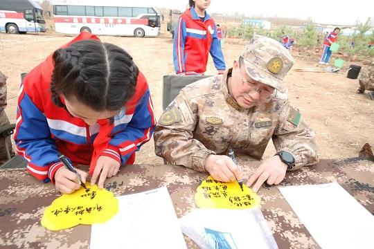 活动中,军地领导为“国防林”揭牌,并一同种下象征军地共筑强大国防的“国防松”,随后,大家几人一组,在事先划分好的植树区域里,有的手扶树苗,有的挥舞铁锹,有的弯腰培土,有的浇水灌溉,大家干劲十足、配合默契。活动现场,兴安军分区还组织开展“我和小树共成长”植树实践活动,军地领导和学生们一起植树,并勉励他们要好好学习,早日成才。大家合力为一株株树苗“落地安家”,植树现场一派热火朝天的景象。