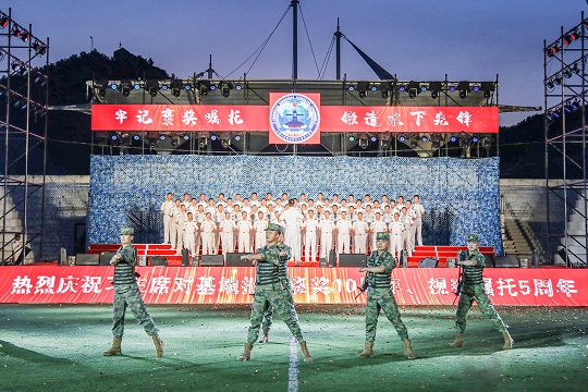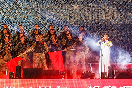锣鼓队、舞蹈队、武术队等6支特色队组共同唱响气势雄浑的《砺剑深蓝》原创歌曲,展现官兵精武保障、扎根深山、向深蓝的坚定信念。