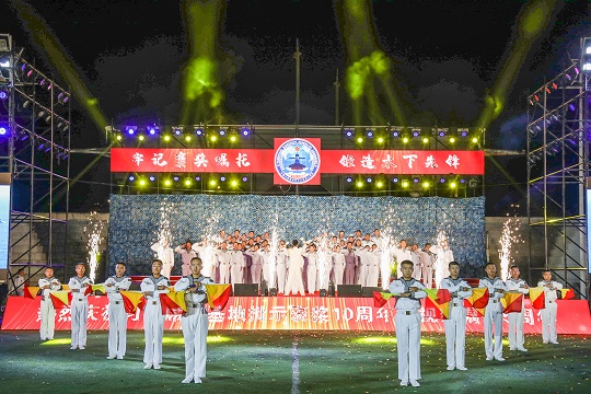 近日,北部战区海军某潜艇基地隆重举行“牢记领袖嘱托、锻造水下先锋”广场歌咏展演。