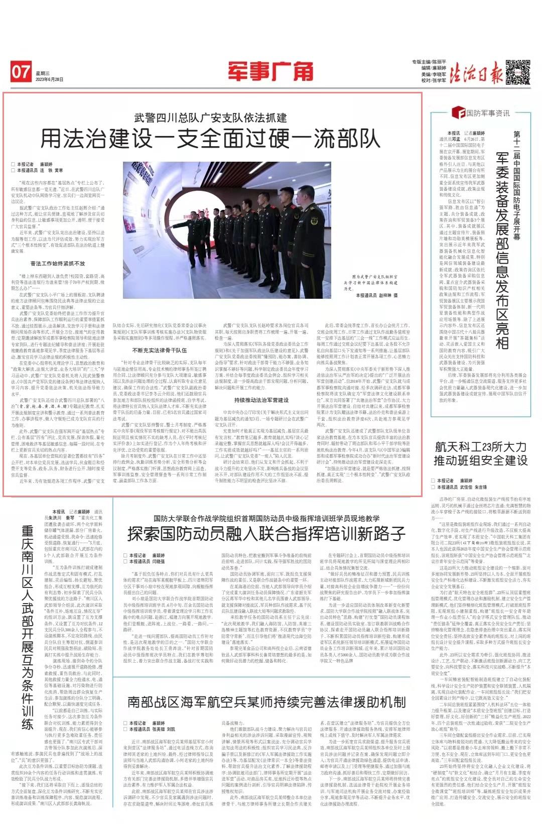 武警广安支队还建成了武警部队支队级单位首家法治教育基地,在为本支队官兵提供丰富的法治教育同时,辐射带动了周边部队和邓小平干部学院等驻地机构法治教育。今年4月,该支队与《中国军法》编辑部和成都军事检察院成功合办“新时代法治军营建设研讨会”,持续推动法治军营建设走深走实。