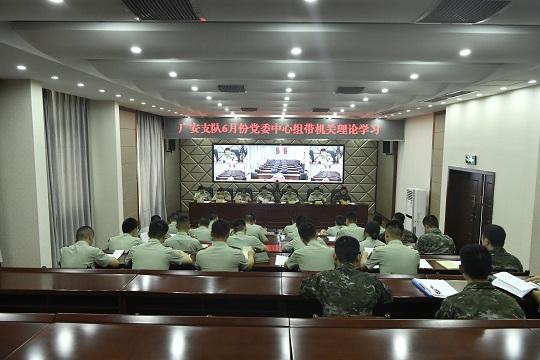在党委中心组带机关理论学习、思想政治教育和“政策大解读、法规大讲堂、业务大培训”的“三大”学习活动中,武警广安支队党委机关将人民武装警察法、《中国共产党军队党的建设条例》等法律法规纳入学习内容,提升党委依法决策、机关依法指导能力水平。