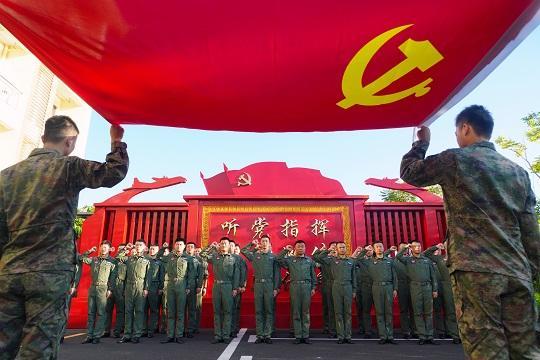 图为南部战区海军航空兵某部组织官兵重温入党誓词。张英锴 摄