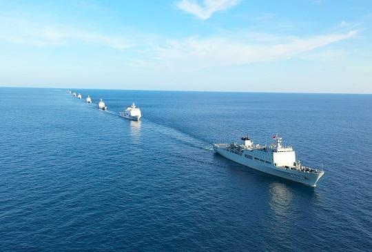 图为南部战区海军某部组织编队航行训练。武欢庆 摄