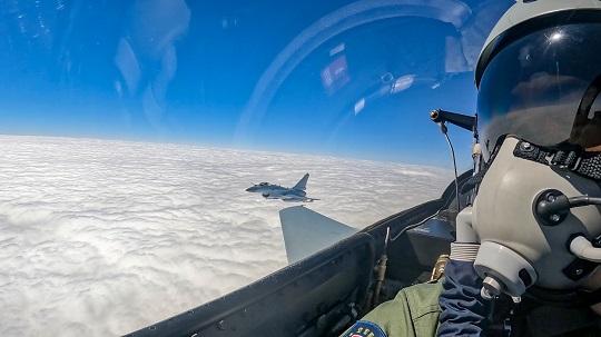 图为南部战区空军某部长僚机前往预定空域,即将展开空战对抗。王国云 摄