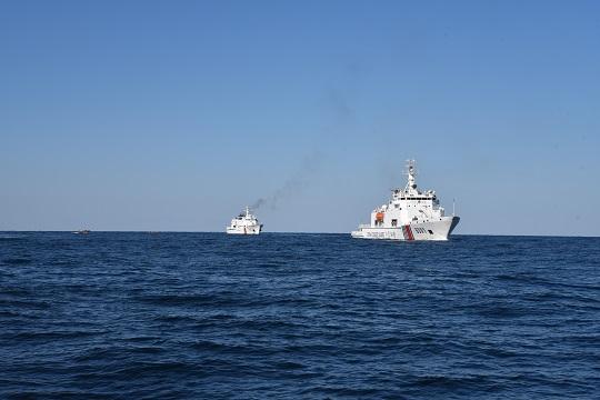 图为海警舰艇开展执法巡航。江壮志 刘官正 摄