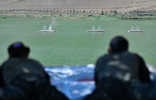 图为参赛选手进行水上狙击课目竞赛。侯崇慧 摄