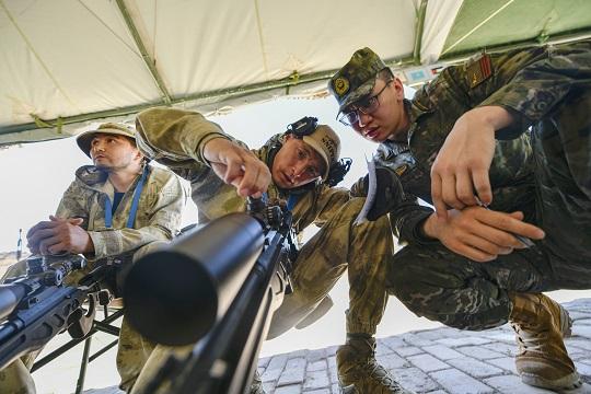 炎热的天气丝毫没有影响选手们的参赛热情,在竞赛现场,狙击手们或是开怀大笑,彼此竖起拇指点赞,或是打着手势交流比赛经验。
