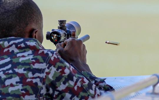图为参赛选手进行多种姿势狙击课目竞赛。安晓惠 摄