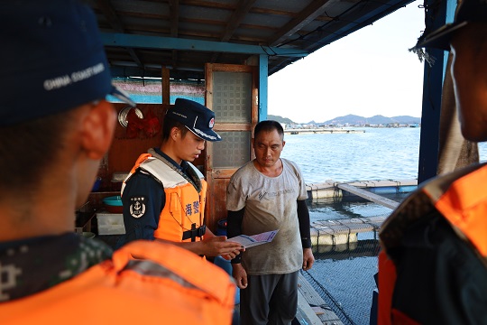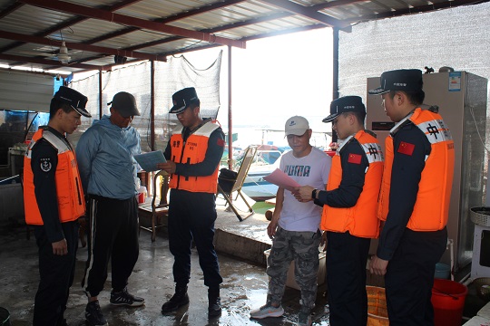 在做好海警营区和执法舰艇防台工作的基础上,该局执法员深入辖区码头开展安全检查,帮助渔船民对渔排、船只加固缆绳、整理网具,检查防台防汛措施,消除各类安全隐患。巡逻艇同步出海巡查,通过广播喊话、发放宣传册等方式进行防台宣传,紧急劝返辖区渔民群众撤离到陆地。