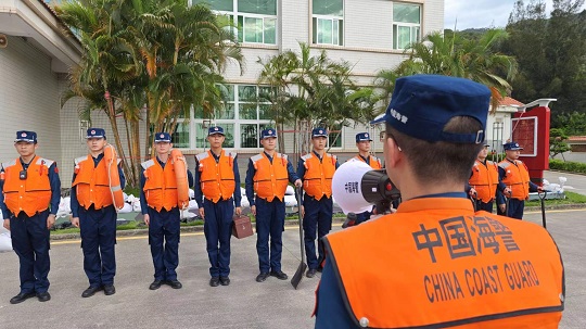 在台风逼近前,7月26日,广东海警局各级组织开展了渔船防台应急演练,演练内容主要包括:发生险情时的通讯联络和紧急处置、海上救助和救助搁浅渔船等。通过演练,进一步增强了执法员的防台意识和应变能力,提高了应急处置能力。