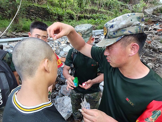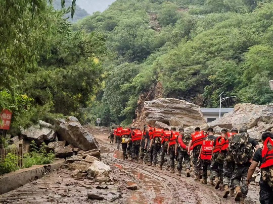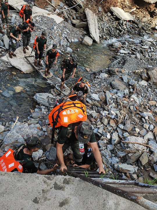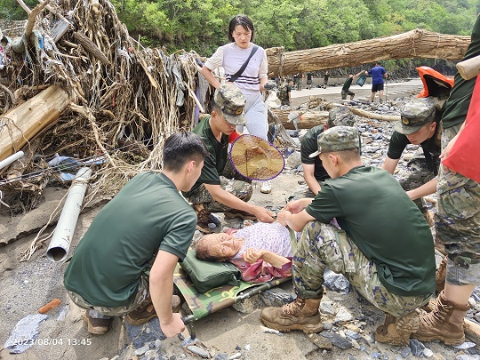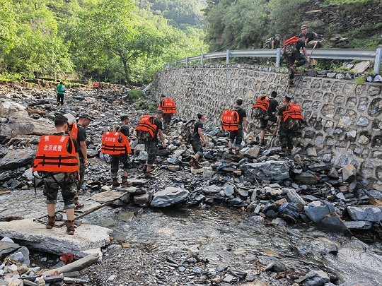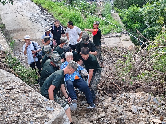 8月4日,由于道路被冲毁,北京市房山区史家营乡多个自然村断水断电,物资紧缺,武警北京总队机动第二支队紧急出动300余人,山区徒步40公里,人均负重30千克,将村民紧缺的食物,药品,饮水送至村民手中,并转运重伤灾民、老人8人。