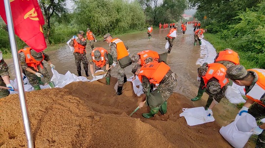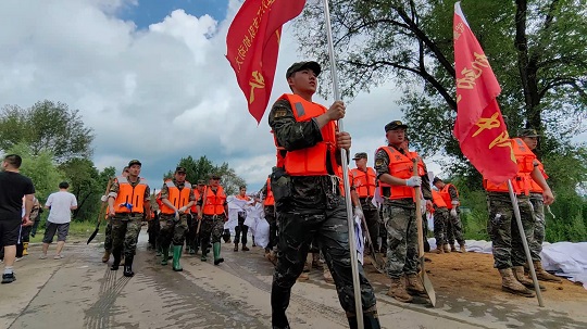 连日来,黑龙江省牡丹江市受连续降雨叠加上游洪水过境影响多地出现险情。镜泊湖水库大坝出现溢流,洪水危及水库东侧的瀑布村。牡丹江市污水处理厂东北侧江水水位上涨,洪水逼近公路,即将倒灌进厂区,并伴有管涌出现,周围居民生命财产安全受到严重威胁。武警黑龙江总队牡丹江支队两百余名官兵接到命令后,迅即出动前往抗洪一线。