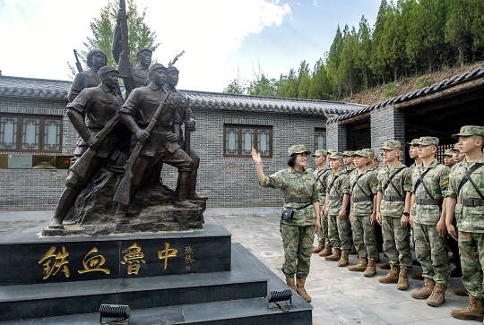 图为顾爱云在驻地红色场馆讲述革命先辈的战斗故事,激励学员赓续红色基因,投身强军实践。刘明松 摄
