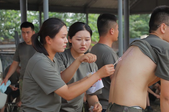图为陆军第82集团军“铁军旅”“模范卫生队”为官兵巡诊擦药。杨仕伟 摄