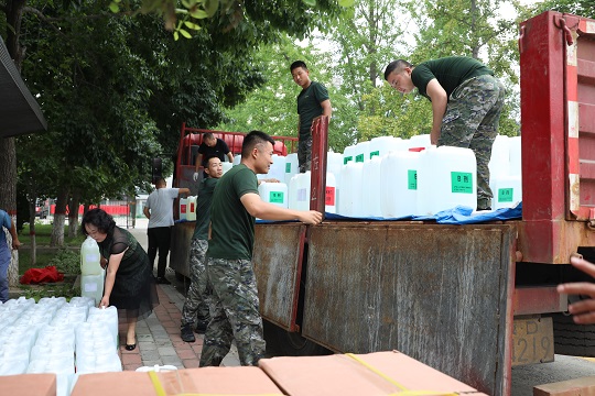 近日,因台风“杜苏芮”引发暴雨洪涝灾害,全国爱国拥军模范、邯郸市爱国拥军联合会主席王爱英联合河北省邯郸市涉县人武部,携带10吨消毒原液及生活物资紧急驰援河北省涿州市,于8月8日上午10时抵达,为灾后重建工作提供援助。