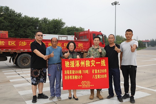 图为10吨消毒原液从涉县挺进涿州抗洪一线。