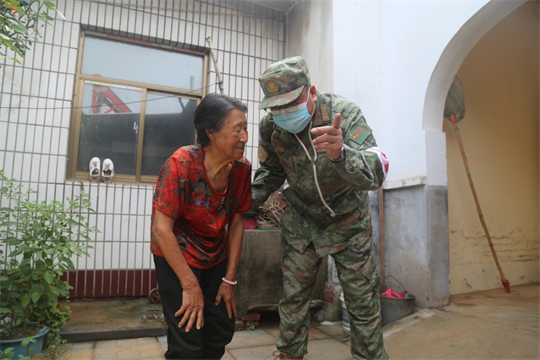村里的五保户张桂香奶奶70多岁高龄,长期独居。医疗服务队的王永欣主任得知情况后,携带血压计、血糖仪等医疗设备,专程赶到张奶奶家中,细致地为她检查身体,发放心血管药物、防暑药物等20余盒。张奶奶握着医护人员的手,满含热泪激动又朴实地一直说:“谢谢你们,谢谢你们……”