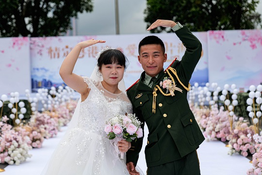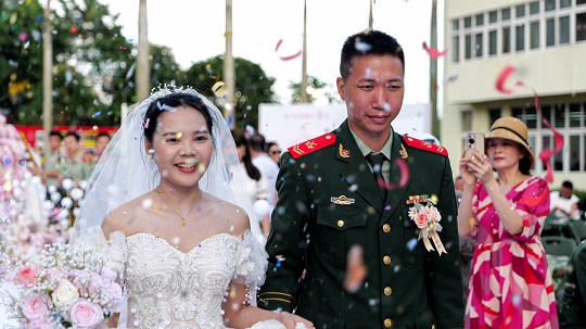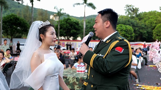 执法员邱猛猛的爱人吴佳怡在致辞中说,这次集体婚礼将成为他们生命中最美好最深刻的记忆,同时,她也将继续激励自己的爱人扎根海疆,为祖国作出更大的奉献。话语朴实无华但掷地有声,引起现场所有人共鸣。