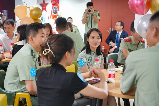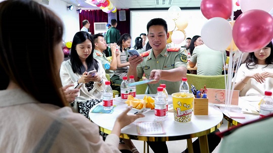 踩着音符,迎着微风,应邀出席的女嘉宾走进广东海警局,在海天的见证下共赴一场浪漫的海疆之约。在“相约鹏城海疆·共叙幸福人生”交友联谊会活动现场,男女嘉宾领取属于自己的“缘分号码牌”,围坐交流。广东海警局执法员马运泽来到女嘉宾的座位旁,大方介绍自己,女嘉宾也积极回应。经过一番交流,双方互有好感,一同拍下合影。
