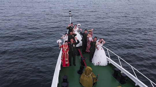 相遇于那个城市,萌芽于露朝;相知于那座海岛,升华至初晓;相约于这场盛宴,定格成坐标。当浪漫与忠诚互成一色,爱情与国家融为一体,都将化为洁莹的浪花,在祖国的万里海防上生生不息。
