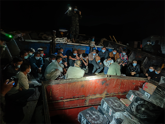 去年11月21日,广东海警局接群众举报,指派广东汕头海警局联合汕头当地公安、海关、烟草部门,在汕头市南澳县查获一起走私香烟案,海陆联动现场抓获涉案人员30人,查扣车辆14台、改装船舶1艘、涉案香烟93000余条,总案值约2700万元。经查,该批香烟均无合法单证手续。