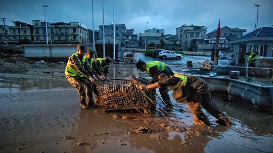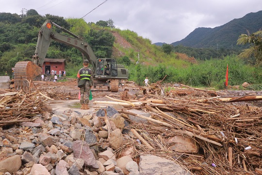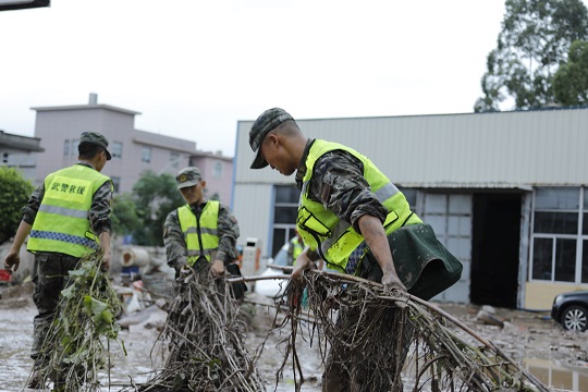 台风登陆后,福清市镜洋镇遭遇强降雨袭击,发生洪涝灾害。接福清市人民政府函请,武警第二机动总队某支队于9月5日14时40分出动63名官兵,携带15台(套)专业救援机械赶赴受灾一线,协助地方政府进行道路清障和供电抢修任务。