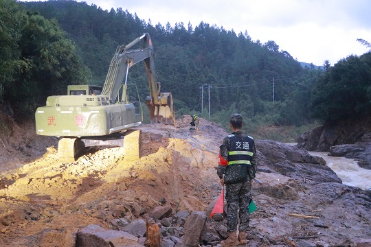 9月5日凌晨,福州市永泰县葛岭镇连续强降雨,引发山体滑坡,造成道路中断、交通堵塞,停水停电、群众受困。武警第二机动总队某支队紧急派出应急救援分队,携带17套大型救援装备,赶赴受灾现场。截至9月5日18时,官兵共清理修筑路基50米,清理塌方体17处,约5500方土石,运送物资100余份,同时,继续对葛岭镇街区进行清淤,并计划抢通另外两条乡村公路。