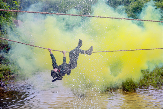 图为武警第二机动总队某支队五中队官兵不惧危险牵引横渡。王梦林 摄
