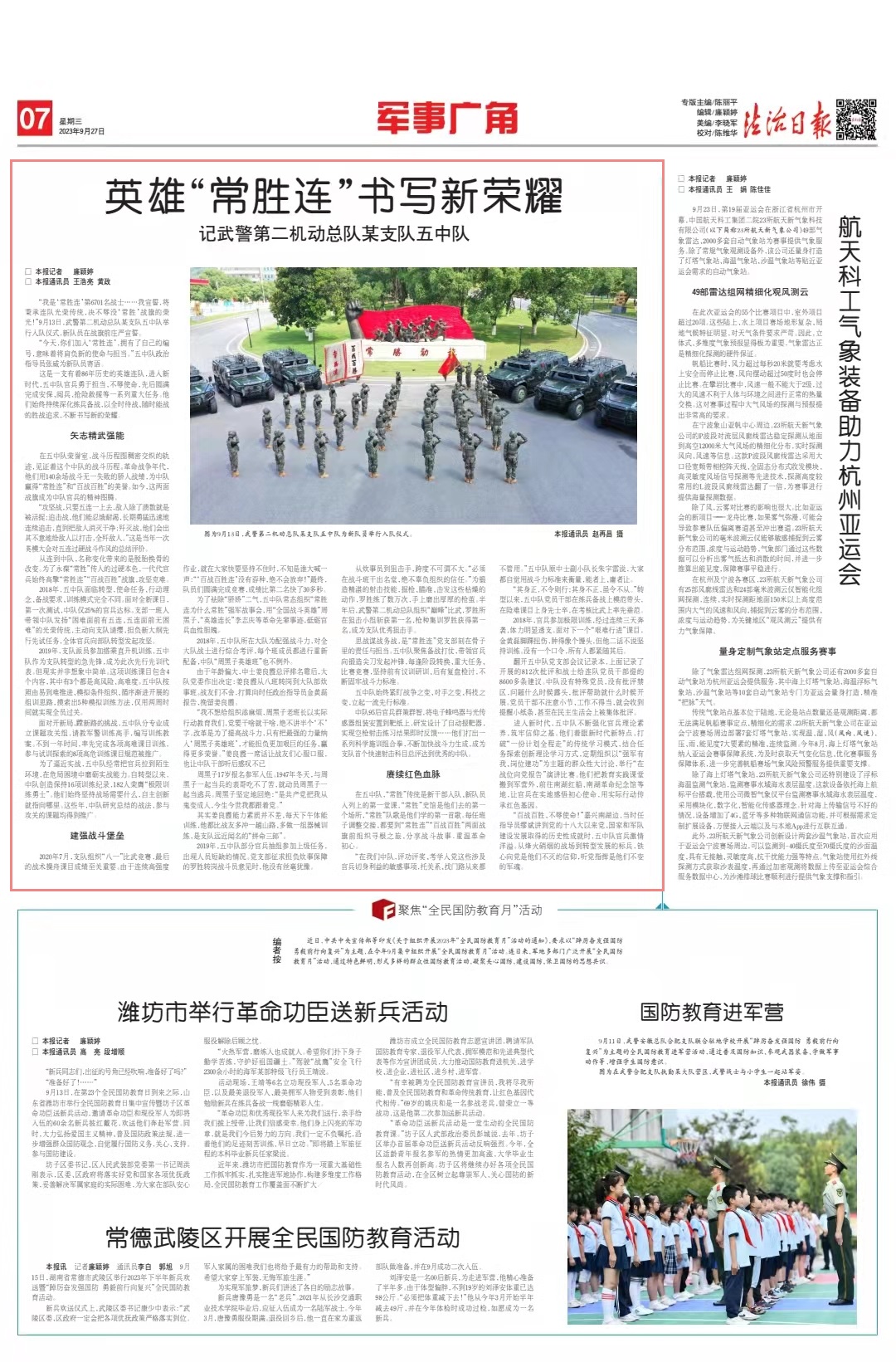 这是一支有着86年历史的英雄连队,进入新时代,五中队官兵勇于担当、不辱使命,先后圆满完成安保、阅兵、抢险救援等一系列重大任务。他们始终持续深化练兵备战,以全时待战、随时能战的胜战追求,不断书写新的荣耀。