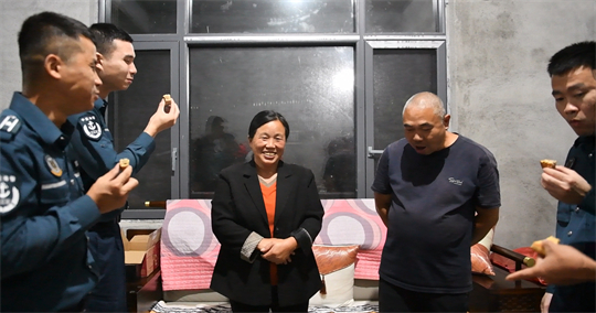 “平时就我们两个人在里,今年中秋我们感觉格外热闹,你们能来陪我们共度节日,我们真的很高兴,谢谢你们!”汪晓龙家里显得格外热闹。