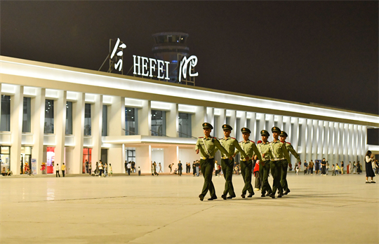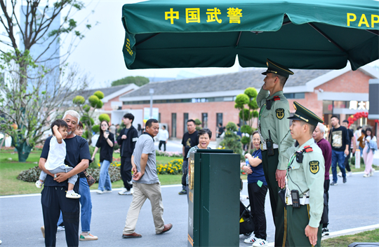 武警合肥支队精心选派执勤官兵,采取定点警戒与武装巡逻相结合的方式维护现场秩序,热情主动为游客提供便民服务,成为园博会上一道靓丽的风景线。